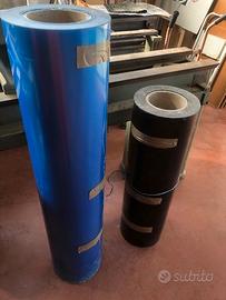 Bobine penso di plexglax trasparente e nero con pellicola protettiva in rulli trasparente alto 123cm e nero 90 cm rovinato qualche cm alla base appoggio