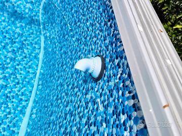 Bocchettone orientabile con curva a 90° per piscine fuori terra (Bestway, Intex, ecc.) La sezione del tubo in uscita a 38mm (come i tubi) per renderlo utilizzabile su filtri a sabbia di una discreta portata (8-10.000 L/h). L'orientabilità permette di creare correnti superficiali / di fondo cosi da convogliare verso lo skimmer lo sporco superficiale / la sporcizia di fondo.
