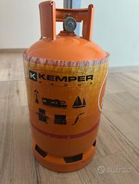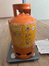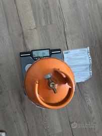 Vendo per inutilizzo bombola gas da 5kg, praticamente nuova con 4,5 kg residui. Insieme alla bombola cedo anche il regolatore di pressione in foto. Per altre informazioni contattatemi
