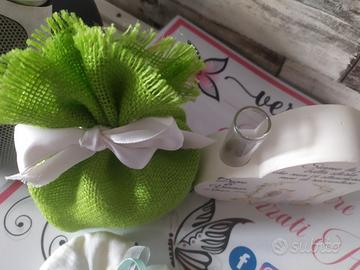 Bellissimo profumatore in polvere di ceramica a forma di cuore,un oggetto decisamente importante e personalizzabile come si vede in foto. Sempre completa di sacchettino porta confetti a scelta .