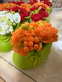 Bellissima scarpina con i fiori . Fatte a mano di sapone profumato vari colori . Su prenotazione . Spedisco .