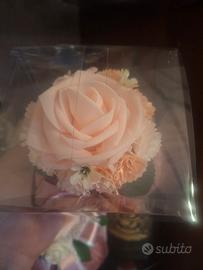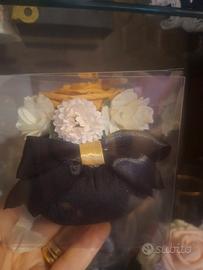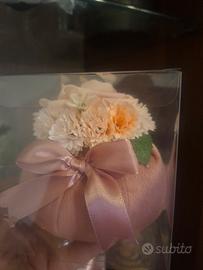 Bon bon profumato completamente realizzato a mano,ideale come bomboniera ,abbellimento tavoli o come piccoli pensierini, misura 10 cm x10 cm diametro 28/29 cm,personalizzabile con vari colori sia il tessuto che i fiori in base all'occasione per rendere il tutto più elegante 🩷,con una maggiorazione sul prezzo si possono aggiungere confetti, bigliettino e piccoli oggeti in base all'occasione,cosi come in foto completo di scatolina in pvc trasparente e nastro € 9...per grandi quantità sarebbe meglio ordinare con 30/40 giorni di anticipo.