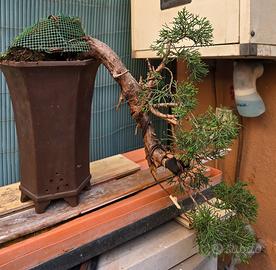 bibsai di ginepro kishu in stile a cascata . h 40 cm , L 20 cm