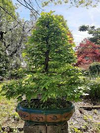 Per motivi di trasloco vendo bellissimo bonsai di Carpinus betulus con vaso pregiato cinese di cm 80. La sua età è di circa 50 anni, alto cm 130, circonferenza fusto alla base cm 30.