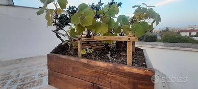 vendo bonsai di vite con olivo e fico su terrazzamento.Il vaso é in legno e misura 40 cm x 30 x 14 di altezza ( la parte +:alta 20 cm).Il diametro del nebari dell' olivo é di 7 cm.,ci sono 3 ceppi di vite + il fico. L'altezza totale é di 40 cm.