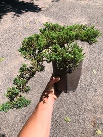 Pre-bonsai di Ginepro Procumbens, stile cascata vaso di plastiva simil-gress, pianta robusta, ottimo materiale da allenameto.