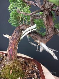 Piccolo drago bonsai di ginepro, ottima salute vegetazione compatta, bellissimo movimento del tronco e legna secca.