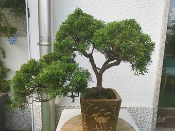 Bonsai di juniperus chinensis stile semicascata molto bello, folto, sano e curato. Vaso importante in terracotta smaltata lavorato con decorazioni in rilievo. Età stimata 17 anni Larghezza del nebari 6 cm Altezza 40 cm Profondità 40 cm Altezza (vaso) 19 cm Larghezza (vaso) 18 cm solo ritiro a mano eventuale spedizione da valutare ma ho già trovato info di costo intorno 40/60 euro