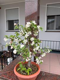 Bonsai di melo ornamentale in coltivazione, fiorisce e fruttifica ogni anno, pianta in ottima salute rinvasata in terra di qualità nel 2025, non spedisco, foto attuali ancora coi fiori,