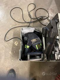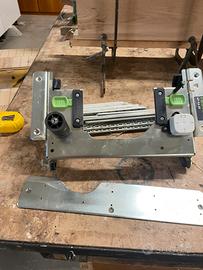 Bordatrice Festool K65 completa di accessorio AP KA 65 per l’inserimento in tavolo fisso e rimanenze pastiglie colla bicolore.