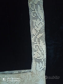 Bordo colore beige vintage realizzato all'uncinetto, in ottimo filato di cotone ,per bordare un lenzuolo singolo o anche una piazza e mezza oppure una tenda .Misura MT 1,84 + 40 cm le fasce laterali che volendo si possono scucire per allungare la fascia.Solo per interessati .
