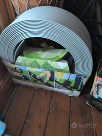 Bordura per aiuola della Lacogreen due rotoli si colorazioni diverse. Nuovi ancora inscatolati. Due rotoli da 15mt x 15cm uno marrone scuro e uno grigio chiaro.