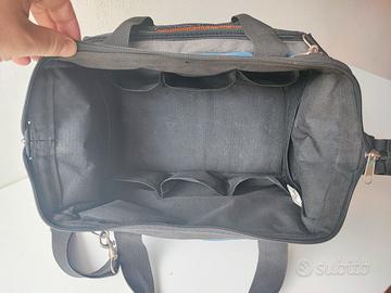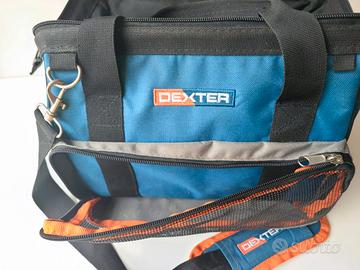 Borsa porta attrezzi Dexter. Usata in ottime condizioni, cinghie maniglie e cerniere perfette. Usata pochissimo, sempre tenuta in garage, usata solo x piccoli lavori domestici (non sono un professionista) Dimensioni 35x20x20