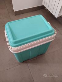 Realizzata in materiale resistente, è dotata di rivestimento isolante che garantisce la conservazione della temperatura sia dei prodotti freddi che caldi. Ha un'ampia capacità di 36 litri e una maniglia per un facile trasporto che blocca anche il coperchio, rendendo questa borsa termica indispensabile per barbecue e picnic, ma anche per la pesca.