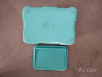 Il coperchio può essere capovolto ed utilizzato come superficie piana. Facile da pulire. Senza impacco di ghiaccio, solo il contenitore.