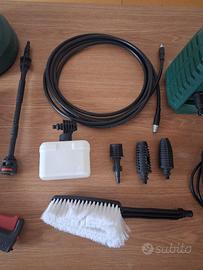 Bosch Idropulitrice ad alta pressione EasyAquatak 120, 1500 W, kit Home and Car incluso, portata max.: 350 l/h. Dotazione Edizione Amazon: EasyAquatak 120, Pistola ad alta pressione, Spazzola per porticati 250, Spazzola setole bianche (mai utilizzata), Lancia, 5 m tubo flessibile per alta pressione, Ugello a getto variabile, Ugello a getto rotante, Diffusore per detergente ad alta pressione da 450 ml