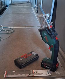 Bosch Sega da giardino gattuccio a batteria Keo (1 batteria da 2,0 Ah, sistema da 18 Volt, diametro di taglio 80 mm, con accessori extra: - Bosch Set Da 15 Pezzi Di Lame Per Legno E Metallo - Bosch Professional 5 pz. di lame per sega universale S 1531 L Top per legno, 240 x 19 x 1,5 mm. - libretto istruzioni. Usato poco