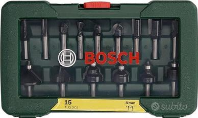 Bosch Set da 15 Frese in Metallo Duro, per Legno, 45 X 40 X 25 cm, codolo 8 mm, verde, per fresatrice verticale. Nuovo, mai usato.
