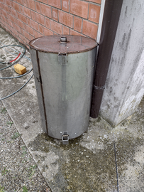 Botte acciaio inox. Misure: h 80 cm diametro 50 cm diametro tappo 4 cm.