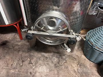Botte in acciao inox per uso alimentare completo di indicatore di livello e supporto a terra. Capacità 550 litri