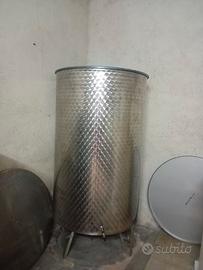 Botte in acciaio per fare il vino da 10 quintali, ha i piedi, il coperchio ed il galleggiante. largo 1 metro e 70 e lungo 1 metro e 20.