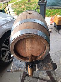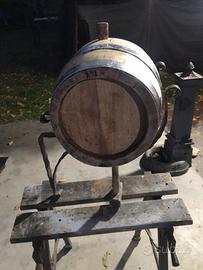 Botte in rovere 11,5 litri con supporto in ferro battuto fissaggio a muro cerchi zincati a caldo linterno della botte e ancora vergine mai messo ne vino ne grappa tenuta perfetta come nuova