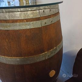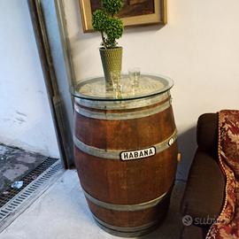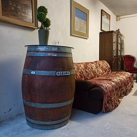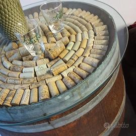 Bellissima botte originale ricondizionata, con decorazione di tappi in sughero da tutto il mondo sotto al piano in cristallo su-misura lastra mm 12. Bellissimo oggetto decorativi per esterno/interno e come tavolo per aperitivi. € 400