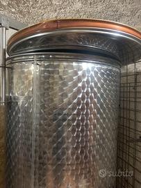 1 Botte in acciaio inox con fondo conico capienza 1000 litri, ad uso enologico completa di tre piedi rinforzati di acciaio inox, rubinetto, tappo con chiusura pneumatica e valvola di sfiato, alza tappo tutto perfettamente funzionante.