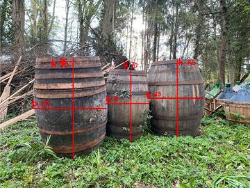 Botti in legno e metallo da restaurare per farci tavolini o oggetti di design per esterno. 3 botti di varie misure: piccola, media e grande Le misure le trovi sull’ultima foto dove è specificato altezza e diametro delle botti. IL PREZZO È PER LA BOTTE SINGOLA