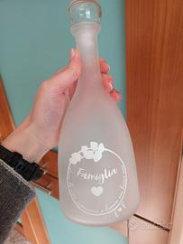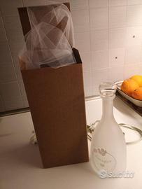 Vendo bottiglie in vetro satinato create su misura come bomboniera matrimonio. N. 17/20 bottiglie complete di confezione e fiocco..all'interno tulle bianco. Prezzo cadauna, trattabile! Utilizzabili anche come centro tavola/vaso/bottiglia per liquori o acqua. Complete di tappo.