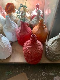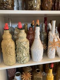 Bottiglie e vasetti decorati a mano in gesso di diverse dimensioni e colori IL PREZZO E INDICATIVO PER SINGOLO PEZZO