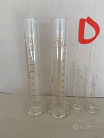 D: cilindri graduati con piede esagonale da 500ml cm 37h pz 2 , da 50ml cm 21 h, da 10 ml cm 17h . 4 pezzi per € 50.