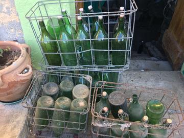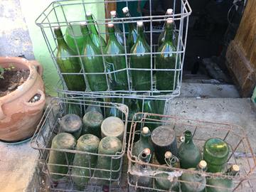 Vendo N. 7 casse lunghe e 4 quadrate in plastica per trasporto da 8 bottiglioni + 2 gabbie lunghe per 10 e 2 gabbie lunghe x 8 bottiglioni in ferro + 1 quadrata per 6 pezzi sempre in ferro + 2 casse plastica per bottiglie da 1 lt x 12 pezzi, in blocco 100?, singolarmente 8?.