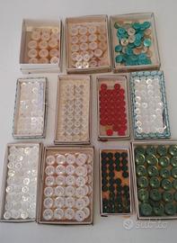 Vendo per cessata attività Bottoni vari formati e colori come da foto, anche madreperla Vendo a stock oppure a richiesta per quantità.