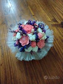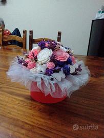 Bouquet di candele profumate rose e bianche con aroma alla vaniglia, con scatola in cartone rossa ottimo come centrotavola soprammobile e idea come idea regalo, con possibilità di avere piu pezzi e varie grandezze su prenotazione.