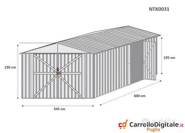 * Dimensioni esterne (solo perimetro): 3.45 m (Larghezza) x 6.00 m (Lunghezza)