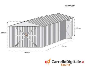 Il garage prefabbricato 360 x 514 viene venduto nuovo con garanzia e con fattura o ricevuta fiscale Viene consegnato all'indirizzo che ci verra' comunicato in kit di montaggio comprensivo di tutta la ferramenta necessaria a montarlo Il box auto in lamiera di Acciaio Zincata grecata con portone a doppia anta e porticina laterale, perfetto per il giardino usato come capanno per ricovero rimessa attrezzi o come riparo per auto, moto, baracca da cantiere SPEDIZIONE IN TUTTA ITALIA INCLUSA NEL PREZZO * Dimensioni esterne (incluso tetto): 3.60 m (Larghezza) x 5.14 m (Lunghezza) x 2,32 m (Altezza) * Dimensioni esterne (solo perimetro): 3.45 m (Larghezza) x 5.14 m (Lunghezza) x 2,32 m (Altezza) * Dimensioni interne: 3.40 m (Larghezza) x 5.10 m (Lunghezza) x 2,32 m (Altezza) * Altezza della parete: 2,00 m * altezza Colmo: 2.32 m * Metri Quadri: 18,50 * Peso struttura: 320 kg * Rinforzo rigido: 40 mm x 60 mm , spessore 1,2 mm in acciaio zincato tubi telaio scatolato * Dimensioni porta principale anteriore: 2.47 m (Larghezza) x 1,95 m (Altezza) (2 porte) * Dimensioni della porta laterale: 0.83 m (Larghezza) x 1,95 m (Altezza) (1 porta) * Spessore pannelli: 0,42 mm * Spessore profili: 0,70 mm Telefono/Whatsapp: A soli 1438 euro IVA, spedizione ed assicurazione sulla spedizione inclusi nel prezzo Possibilita' di acquisto con pagamento alla consegna (SOLO CONTANTI no assegni) Attenzione, il metallo utilizzato non e' ferro o alluminio ma acciaio zincato Il container , capannone in lamiera in questione non e' coibentato (pannelli sandwich) ma puo' essere modificato facilmente e con una spesa minima Il box in lamiera e' composto da profili e pannelli in acciaio zingato e verniciato (sia all'interno che all'esterno) in maniera da poter resistere alle intemperie A differenza di quelli in legno i box in lamiera zincata non necessitano di nessuna manutenzione Telefono/Whatsapp: