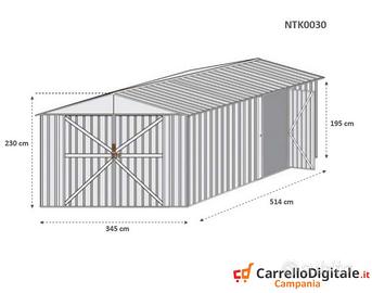Il garage prefabbricato 360 x 514 viene venduto nuovo con garanzia e con fattura o ricevuta fiscale Viene consegnato all'indirizzo che ci verra' comunicato in kit di montaggio comprensivo di tutta la ferramenta necessaria a montarlo Il box auto in lamiera di Acciaio Zincata grecata con portone a doppia anta e porticina laterale, perfetto per il giardino usato come capanno per ricovero rimessa attrezzi o come riparo per auto, moto, baracca da cantiere SPEDIZIONE IN TUTTA ITALIA INCLUSA NEL PREZZO * Dimensioni esterne (incluso tetto): 3.60 m (Larghezza) x 5.14 m (Lunghezza) x 2,32 m (Altezza) * Dimensioni esterne (solo perimetro): 3.45 m (Larghezza) x 5.14 m (Lunghezza) x 2,32 m (Altezza) * Dimensioni interne: 3.40 m (Larghezza) x 5.10 m (Lunghezza) x 2,32 m (Altezza) * Altezza della parete: 2,00 m * altezza Colmo: 2.32 m * Metri Quadri: 18,50 * Peso struttura: 320 kg * Rinforzo rigido: 40 mm x 60 mm , spessore 1,2 mm in acciaio zincato tubi telaio scatolato * Dimensioni porta principale anteriore: 2.47 m (Larghezza) x 1,95 m (Altezza) (2 porte) * Dimensioni della porta laterale: 0.83 m (Larghezza) x 1,95 m (Altezza) (1 porta) * Spessore pannelli: 0,42 mm * Spessore profili: 0,70 mm Telefono/Whatsapp: A soli 1360 euro IVA, spedizione ed assicurazione sulla spedizione inclusi nel prezzo Possibilita' di acquisto con pagamento alla consegna (SOLO CONTANTI no assegni) Attenzione, il metallo utilizzato non e' ferro o alluminio ma acciaio zincato Il container , capannone in lamiera in questione non e' coibentato (pannelli sandwich) ma puo' essere modificato facilmente e con una spesa minima Il box in lamiera e' composto da profili e pannelli in acciaio zingato e verniciato (sia all'interno che all'esterno) in maniera da poter resistere alle intemperie A differenza di quelli in legno i box in lamiera zincata non necessitano di nessuna manutenzione Telefono/Whatsapp: