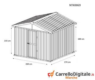 Box casetta 2.75 x 1.75 capanno in lamiera zincata da giardino o cantiere facile da montare grazie al manuale e il kit di montaggio comprensivo di tutta la ferramenta. Casetta per attrezzi, prefabbricato in lamiera di Acciaio Zincata grecata perfetto per il giardino usato come capanno per ricovero rimessa attrezzi da giardinaggio o come riparo per bici e frese. SPEDIZIONE IN TUTTA ITALIA INCLUSA NEL PREZZO * Dimensioni esterne (incluso tetto): 2.75 m (Larghezza) x 1.75 m (Lunghezza) x 2.12 m (Altezza) * Dimensioni esterne (solo perimetro): 2.59 m (Larghezza) x 1.74 m (Lunghezza) x 2.12 m (Altezza Max) * Dimensioni interne: 2.55 m (Larghezza) x 1.70 m (Lunghezza) x 2.10 m (Altezza Max) * Altezza della parete: 1.80 m, altezza colmo 2.12 m * Metri Quadri: 4.81 mq * Dimensioni porta anteriore: 0.83 m (Larghezza) x 1,75 m (Altezza) * Peso struttura: 90 KG Ca. * Spessore pannelli: 0,32 mm * Spessore profili: 0,70 mm Telefono/Whatsapp: A soli 430 euro IVA, spedizione ed assicurazione sulla spedizione inclusi nel prezzo Possibilita' di acquisto con pagamento alla consegna (SOLO CONTANTI no assegni) Attenzione, il metallo utilizzato non e' ferro o alluminio ma acciaio zincato. Il box in acciao in questione non e' coibentato (pannelli sandwich) ma puo' essere modificato facilmente e con una spesa minima. La casetta da esterno e' composta da profili e pannelli in acciaio zingato e verniciato in maniera da poter resistere alle intemperie. A differenza di quelli in legno i box in lamiera zincata non necessitano di nessuna manutenzione Telefono/Whatsapp: