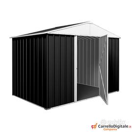 Box casetta 2.75 x 1.75 capanno in lamiera zincata da giardino o cantiere facile da montare grazie al manuale e il kit di montaggio comprensivo di tutta la ferramenta. Casetta per attrezzi, prefabbricato in lamiera di Acciaio Zincata grecata perfetto per il giardino usato come capanno per ricovero rimessa attrezzi da giardinaggio o come riparo per bici e frese. SPEDIZIONE IN TUTTA ITALIA INCLUSA NEL PREZZO * Dimensioni esterne (incluso tetto): 2.75 m (Larghezza) x 1.75 m (Lunghezza) x 2.12 m (Altezza) * Dimensioni esterne (solo perimetro): 2.59 m (Larghezza) x 1.74 m (Lunghezza) x 2.12 m (Altezza Max) * Dimensioni interne: 2.55 m (Larghezza) x 1.70 m (Lunghezza) x 2.10 m (Altezza Max) * Altezza della parete: 1.80 m, altezza colmo 2.12 m * Metri Quadri: 4.81 mq * Dimensioni porta anteriore: 0.83 m (Larghezza) x 1,75 m (Altezza) * Peso struttura: 90 KG Ca. * Spessore pannelli: 0,32 mm * Spessore profili: 0,70 mm Telefono/Whatsapp: A soli 459 euro IVA, spedizione ed assicurazione sulla spedizione inclusi nel prezzo Possibilita' di acquisto con pagamento alla consegna (SOLO CONTANTI no assegni) Attenzione, il metallo utilizzato non e' ferro o alluminio ma acciaio zincato. Il box in acciao in questione non e' coibentato (pannelli sandwich) ma puo' essere modificato facilmente e con una spesa minima. La casetta da esterno e' composta da profili e pannelli in acciaio zingato e verniciato in maniera da poter resistere alle intemperie. A differenza di quelli in legno i box in lamiera zincata non necessitano di nessuna manutenzione Telefono/Whatsapp: