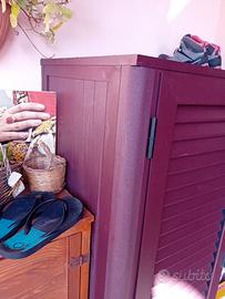 Vendo box in alluminio colore amaranto/rosso gotico, utilizzato come box bombole. Altezza 152 cm larghezza 105 profondità 56 cm Prezzo leggermente trattabile.