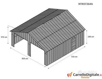 Il box prefabbricato 666 x 724 cm viene venduto nuovo con garanzia e con fattura o ricevuta fiscale. Viene consegnato all'indirizzo che ci verrà comunicato in kit di montaggio comprensivo di tutta la ferramenta necessaria a montarlo. Box garage casetta prefabbricato in lamiera di Acciaio Zincata grecata con doppia Saracinesca NUOVO, perfetto per il giardino usato come capanno per ricovero rimessa attrezzi o come riparo per auto moto, baracca da cantiere o box attrezzi SPEDIZIONE IN TUTTA ITALIA INCLUSA NEL PREZZO -Dimensioni esterne (incluso tetto): 6.66 m (Larghezza) x 7.24 m (Lunghezza) x 3.80 m (Altezza) -Dimensioni esterne (solo perimetro): 6.49 m (Larghezza) x 7.24 m (Lunghezza) -Altezza della parete: 2.37 m -Altezza Colmo: 3.80 m -Metri Quadri: 48,22 mq -Rinforzo rigido: 80 mm x 40 mm, spessore 1,5 mm in acciaio zincato tubi telaio scatolato -Dimensioni porte principali anteriori: 2.55 m (Larghezza) x 2.20 m (Altezza) (Saracinesca) -Dimensioni della porta laterale: 0.72 m (Larghezza) x 1.93 m (Altezza) (1 porta) -Spessore pannelli: 0,32 mm -Spessore profili: 0,70 mm -Peso struttura: 810 kg Telefono/Whatsapp: A soli 4411 euro IVA, spedizione ed assicurazione sulla spedizione inclusi nel prezzo. Possibilità di acquisto con pagamento alla consegna (SOLO CONTANTI no assegni). Attenzione, il metallo utilizzato non è ferro o alluminio ma acciaio zincato Il box in acciaio in questione non è coibentato (pannelli sandwich) ma può essere modificato facilmente e con una spesa minima. La casetta da esterno è composta da profili e pannelli in acciaio zincato e verniciato in maniera da poter resistere alle intemperie. A differenza di quelli in legno i box in lamiera zincata non necessitano di nessuna manutenzione Contattaci subito per avere maggiori informazioni e scoprire altri modelli che potrebbero fare al caso tuo. Oppure inviaci un messaggio con il tuo numero e ti richiameremo non appena possibile Telefono/Whatsapp: