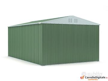 Box casetta 3.27 x 4.59 capanno in lamiera zincata da giardino o cantiere facile da montare grazie al manuale e il kit di montaggio comprensivo di tutta la ferramenta. Casetta per attrezzi, prefabbricato in lamiera di Acciaio Zincata grecata perfetto per il giardino usato come capanno per ricovero rimessa attrezzi da giardinaggio o come riparo per bici e frese. SPEDIZIONE IN TUTTA ITALIA INCLUSA NEL PREZZO * Dimensioni esterne (incluso tetto): 3.27 m (Larghezza) x 4.59 m (Lunghezza) x 2.15 m (Altezza) * Dimensioni esterne (solo perimetro): 3.07 m (Larghezza) x 4.59 m (Lunghezza) x 2.15 m (Altezza Max) * Dimensioni interne: 3.03 m (Larghezza) x 4.55 m (Lunghezza) x 2.10 m (Altezza Max) * Altezza della parete: 1.80 m * Altezza colmo: 2.15 m * Metri Quadri: 15,01 mq * Dimensioni porta anteriore: 1.48 m (Larghezza) x 1,75 m (Altezza) 2 ante da 0,74 m * Spessore pannelli: 0,32 mm * Spessore profili: 0,70 mm * Peso struttura: 201 KG Ca. Telefono/Whatsapp: A soli 886 euro IVA, spedizione ed assicurazione sulla spedizione inclusi nel prezzo Possibilita' di acquisto con pagamento alla consegna (SOLO CONTANTI no assegni) Attenzione, il metallo utilizzato non e' ferro o alluminio ma acciaio zincato. Il box in acciao in questione non e' coibentato (pannelli sandwich) ma puo' essere modificato facilmente e con una spesa minima. La casetta da esterno e' composta da profili e pannelli in acciaio zingato e verniciato in maniera da poter resistere alle intemperie. A differenza di quelli in legno i box in lamiera zincata non necessitano di nessuna manutenzione Telefono/Whatsapp: