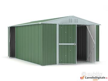 Box casetta 3.27 x 4.59 capanno in lamiera zincata da giardino o cantiere facile da montare grazie al manuale e il kit di montaggio comprensivo di tutta la ferramenta. Casetta per attrezzi, prefabbricato in lamiera di Acciaio Zincata grecata perfetto per il giardino usato come capanno per ricovero rimessa attrezzi da giardinaggio o come riparo per bici e frese. SPEDIZIONE IN TUTTA ITALIA INCLUSA NEL PREZZO * Dimensioni esterne (incluso tetto): 3.27 m (Larghezza) x 4.59 m (Lunghezza) x 2.15 m (Altezza) * Dimensioni esterne (solo perimetro): 3.07 m (Larghezza) x 4.59 m (Lunghezza) x 2.15 m (Altezza Max) * Dimensioni interne: 3.03 m (Larghezza) x 4.55 m (Lunghezza) x 2.10 m (Altezza Max) * Altezza della parete: 1.80 m * Altezza colmo: 2.15 m * Metri Quadri: 15,01 mq * Dimensioni porta anteriore: 1.48 m (Larghezza) x 1,75 m (Altezza) 2 ante da 0,74 m * Spessore pannelli: 0,32 mm * Spessore profili: 0,70 mm * Peso struttura: 201 KG Ca. Telefono/Whatsapp: A soli 886 euro IVA, spedizione ed assicurazione sulla spedizione inclusi nel prezzo Possibilita' di acquisto con pagamento alla consegna (SOLO CONTANTI no assegni) Attenzione, il metallo utilizzato non e' ferro o alluminio ma acciaio zincato. Il box in acciao in questione non e' coibentato (pannelli sandwich) ma puo' essere modificato facilmente e con una spesa minima. La casetta da esterno e' composta da profili e pannelli in acciaio zingato e verniciato in maniera da poter resistere alle intemperie. A differenza di quelli in legno i box in lamiera zincata non necessitano di nessuna manutenzione Telefono/Whatsapp: