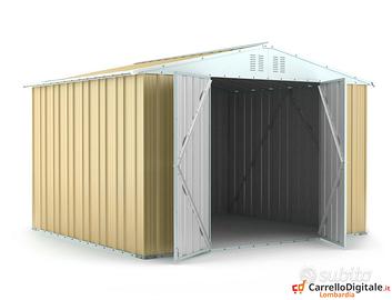Box casetta 3.27 x 2.69 capanno in lamiera zincata da giardino o cantiere facile da montare grazie al manuale e il kit di montaggio comprensivo di tutta la ferramenta. Casetta per attrezzi, prefabbricato in lamiera di Acciaio Zincata grecata perfetto per il giardino usato come capanno per ricovero rimessa attrezzi da giardinaggio o come riparo per bici e frese. SPEDIZIONE IN TUTTA ITALIA INCLUSA NEL PREZZO * Dimensioni esterne (solo perimetro): 3.07 m (Larghezza) x 2.69 m (Lunghezza) x 2.15 m (Altezza Max) Dimensioni interne: 3.03 m (Larghezza) x 2.65 m (Lunghezza) x 2.10 m (Altezza Max) Altezza della parete: 1.80 m, altezza colmo 2.15 m Metri Quadri: 8.80 mq Dimensioni porta anteriore: 2 ante per un totale di 1.48 m (Larghezza) x 1,75m (Altezza) Peso struttura: 135 KG Ca. Spessore pannelli: 0,32 mm Spessore profili: 0,70 mm Telefono/Whatsapp: A soli 530 euro IVA, spedizione ed assicurazione sulla spedizione inclusi nel prezzo Possibilita' di acquisto con pagamento alla consegna (SOLO CONTANTI no assegni) Attenzione, il metallo utilizzato non e' ferro o alluminio ma acciaio zincato. Il box in acciao in questione non e' coibentato (pannelli sandwich) ma puo' essere modificato facilmente e con una spesa minima. La casetta da esterno e' composta da profili e pannelli in acciaio zingato e verniciato in maniera da poter resistere alle intemperie. A differenza di quelli in legno i box in lamiera zincata non necessitano di nessuna manutenzione Telefono/Whatsapp: