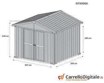 Box casetta 3.27 x 2.69 capanno in lamiera zincata da giardino o cantiere facile da montare grazie al manuale e il kit di montaggio comprensivo di tutta la ferramenta. Casetta per attrezzi, prefabbricato in lamiera di Acciaio Zincata grecata perfetto per il giardino usato come capanno per ricovero rimessa attrezzi da giardinaggio o come riparo per bici e frese. SPEDIZIONE IN TUTTA ITALIA INCLUSA NEL PREZZO * Dimensioni esterne (solo perimetro): 3.07 m (Larghezza) x 2.69 m (Lunghezza) x 2.15 m (Altezza Max) Dimensioni interne: 3.03 m (Larghezza) x 2.65 m (Lunghezza) x 2.10 m (Altezza Max) Altezza della parete: 1.80 m, altezza colmo 2.15 m Metri Quadri: 8.80 mq Dimensioni porta anteriore: 2 ante per un totale di 1.48 m (Larghezza) x 1,75m (Altezza) Peso struttura: 135 KG Ca. Spessore pannelli: 0,32 mm Spessore profili: 0,70 mm Telefono/Whatsapp: A soli 562 euro IVA, spedizione ed assicurazione sulla spedizione inclusi nel prezzo Possibilita' di acquisto con pagamento alla consegna (SOLO CONTANTI no assegni) Attenzione, il metallo utilizzato non e' ferro o alluminio ma acciaio zincato. Il box in acciao in questione non e' coibentato (pannelli sandwich) ma puo' essere modificato facilmente e con una spesa minima. La casetta da esterno e' composta da profili e pannelli in acciaio zingato e verniciato in maniera da poter resistere alle intemperie. A differenza di quelli in legno i box in lamiera zincata non necessitano di nessuna manutenzione Telefono/Whatsapp: