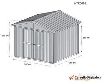Box casetta 3.27 x 2.69 capanno in lamiera zincata da giardino o cantiere facile da montare grazie al manuale e il kit di montaggio comprensivo di tutta la ferramenta. Casetta per attrezzi, prefabbricato in lamiera di Acciaio Zincata grecata perfetto per il giardino usato come capanno per ricovero rimessa attrezzi da giardinaggio o come riparo per bici e frese. SPEDIZIONE IN TUTTA ITALIA INCLUSA NEL PREZZO * Dimensioni esterne (solo perimetro): 3.07 m (Larghezza) x 2.69 m (Lunghezza) x 2.15 m (Altezza Max) Dimensioni interne: 3.03 m (Larghezza) x 2.65 m (Lunghezza) x 2.10 m (Altezza Max) Altezza della parete: 1.80 m, altezza colmo 2.15 m Metri Quadri: 8.80 mq Dimensioni porta anteriore: 2 ante per un totale di 1.48 m (Larghezza) x 1,75m (Altezza) Peso struttura: 135 KG Ca. Spessore pannelli: 0,32 mm Spessore profili: 0,70 mm Telefono/Whatsapp: A soli 530 euro IVA, spedizione ed assicurazione sulla spedizione inclusi nel prezzo Possibilita' di acquisto con pagamento alla consegna (SOLO CONTANTI no assegni) Attenzione, il metallo utilizzato non e' ferro o alluminio ma acciaio zincato. Il box in acciao in questione non e' coibentato (pannelli sandwich) ma puo' essere modificato facilmente e con una spesa minima. La casetta da esterno e' composta da profili e pannelli in acciaio zingato e verniciato in maniera da poter resistere alle intemperie. A differenza di quelli in legno i box in lamiera zincata non necessitano di nessuna manutenzione Telefono/Whatsapp: