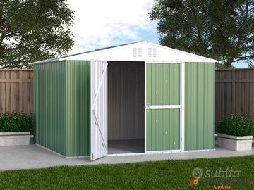Box casetta 3.27 x 2.69 capanno in lamiera zincata da giardino o cantiere facile da montare grazie al manuale e il kit di montaggio comprensivo di tutta la ferramenta. Casetta per attrezzi, prefabbricato in lamiera di Acciaio Zincata grecata perfetto per il giardino usato come capanno per ricovero rimessa attrezzi da giardinaggio o come riparo per bici e frese. SPEDIZIONE IN TUTTA ITALIA INCLUSA NEL PREZZO * Dimensioni esterne (solo perimetro): 3.07 m (Larghezza) x 2.69 m (Lunghezza) x 2.15 m (Altezza Max) Dimensioni interne: 3.03 m (Larghezza) x 2.65 m (Lunghezza) x 2.10 m (Altezza Max) Altezza della parete: 1.80 m, altezza colmo 2.15 m Metri Quadri: 8.80 mq Dimensioni porta anteriore: 2 ante per un totale di 1.48 m (Larghezza) x 1,75m (Altezza) Peso struttura: 135 KG Ca. Spessore pannelli: 0,32 mm Spessore profili: 0,70 mm Telefono/Whatsapp: A soli 530 euro IVA, spedizione ed assicurazione sulla spedizione inclusi nel prezzo Possibilita' di acquisto con pagamento alla consegna (SOLO CONTANTI no assegni) Attenzione, il metallo utilizzato non e' ferro o alluminio ma acciaio zincato. Il box in acciao in questione non e' coibentato (pannelli sandwich) ma puo' essere modificato facilmente e con una spesa minima. La casetta da esterno e' composta da profili e pannelli in acciaio zingato e verniciato in maniera da poter resistere alle intemperie. A differenza di quelli in legno i box in lamiera zincata non necessitano di nessuna manutenzione Telefono/Whatsapp: