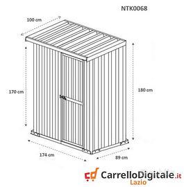 Box casetta 1.74 x 1.00 capanno in lamiera zincata da giardino o cantiere facile da montare grazie al manuale e il kit di montaggio comprensivo di tutta la ferramenta. Casetta per attrezzi, prefabbricato in lamiera di Acciaio Zincata grecata perfetto per il giardino usato come capanno per ricovero rimessa attrezzi da giardinaggio o come riparo per bici e frese. SPEDIZIONE IN TUTTA ITALIA INCLUSA NEL PREZZO * Dimensioni esterne (incluso tetto): 1.74 m (Larghezza) x 1.00 m (Lunghezza) x 1.82 m (Altezza) * Dimensioni esterne (solo perimetro): 1.74 m (Larghezza) x 0.89 m (Lunghezza) x 1.80 m (Altezza Max) * Dimensioni interne: 1.70 m (Larghezza) x 0.85 m (Lunghezza) x 1.80 m (Altezza Max) * Altezza della parete: 1.70 m anteriore, 1.80 m posteriore * Metri Quadri: 1.74 mq * Dimensioni porta anteriore: 0.83 m (Larghezza) x 1,65 m (Altezza) * Peso struttura: 45 KG Ca. * Spessore pannelli: 0,32 mm * Spessore profili: 0,70 mm Telefono/Whatsapp: A soli 265 euro IVA, spedizione ed assicurazione sulla spedizione inclusi nel prezzo Possibilita' di acquisto con pagamento alla consegna (SOLO CONTANTI no assegni) Attenzione, il metallo utilizzato non e' ferro o alluminio ma acciaio zincato. Il box in acciao in questione non e' coibentato (pannelli sandwich) ma puo' essere modificato facilmente e con una spesa minima. La casetta da esterno e' composta da profili e pannelli in acciaio zingato e verniciato in maniera da poter resistere alle intemperie. A differenza di quelli in legno i box in lamiera zincata non necessitano di nessuna manutenzione Telefono/Whatsapp: