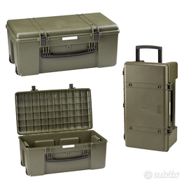 Adatto all’esterno, resistente agli urti e alle temperature, con ruote e maniglia trolley, maniglie laterali, predisposizione per lucchetto e coperchio rinforzato.